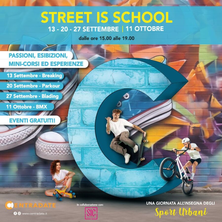 Street is School arriva al Centradate Retail Park! Cinque appuntamenti imperdibili per scoprire e vivere gli sport urbani con istruttori qualificati...