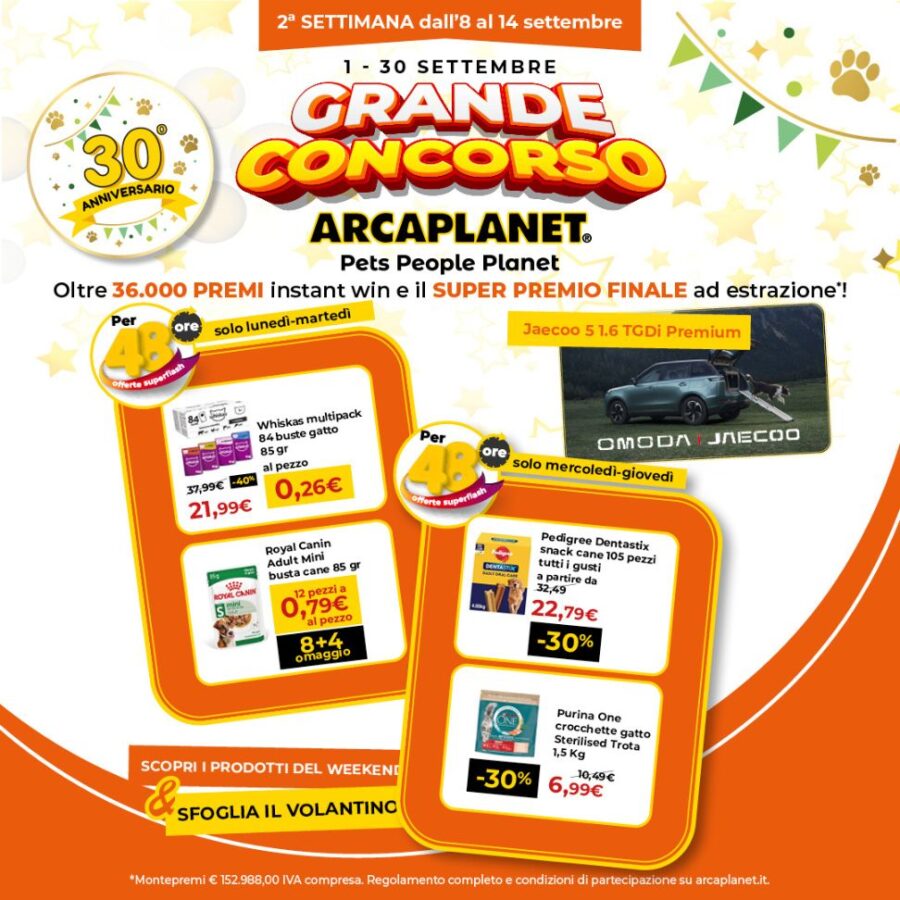 Da Arcaplanet è arrivato Il Grande Concorso per festeggiare i 30 anni! 🎉 👉 Fino al 30 settembre puoi vincere...